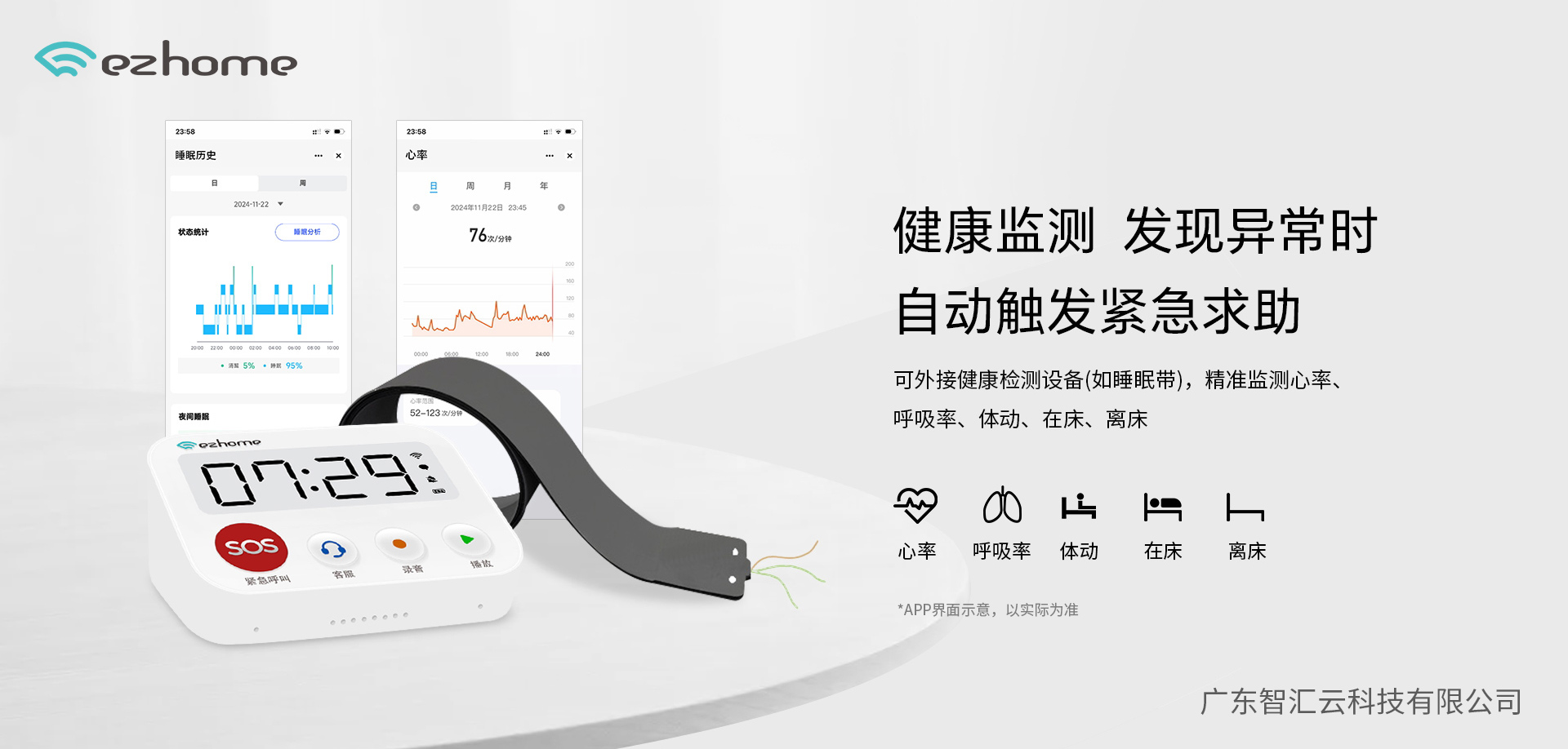 当系统识别到体征指标异常(如夜间心率异常、血压骤升等风险数据)或达到预设风险阈值时,自动启动多级告警求助,通过电话、短信、APP等多种方式同步通知紧急联系人,第一时间告知子女、物业或机构人员,形成“监测-预警-响应”的全流程闭环守护。