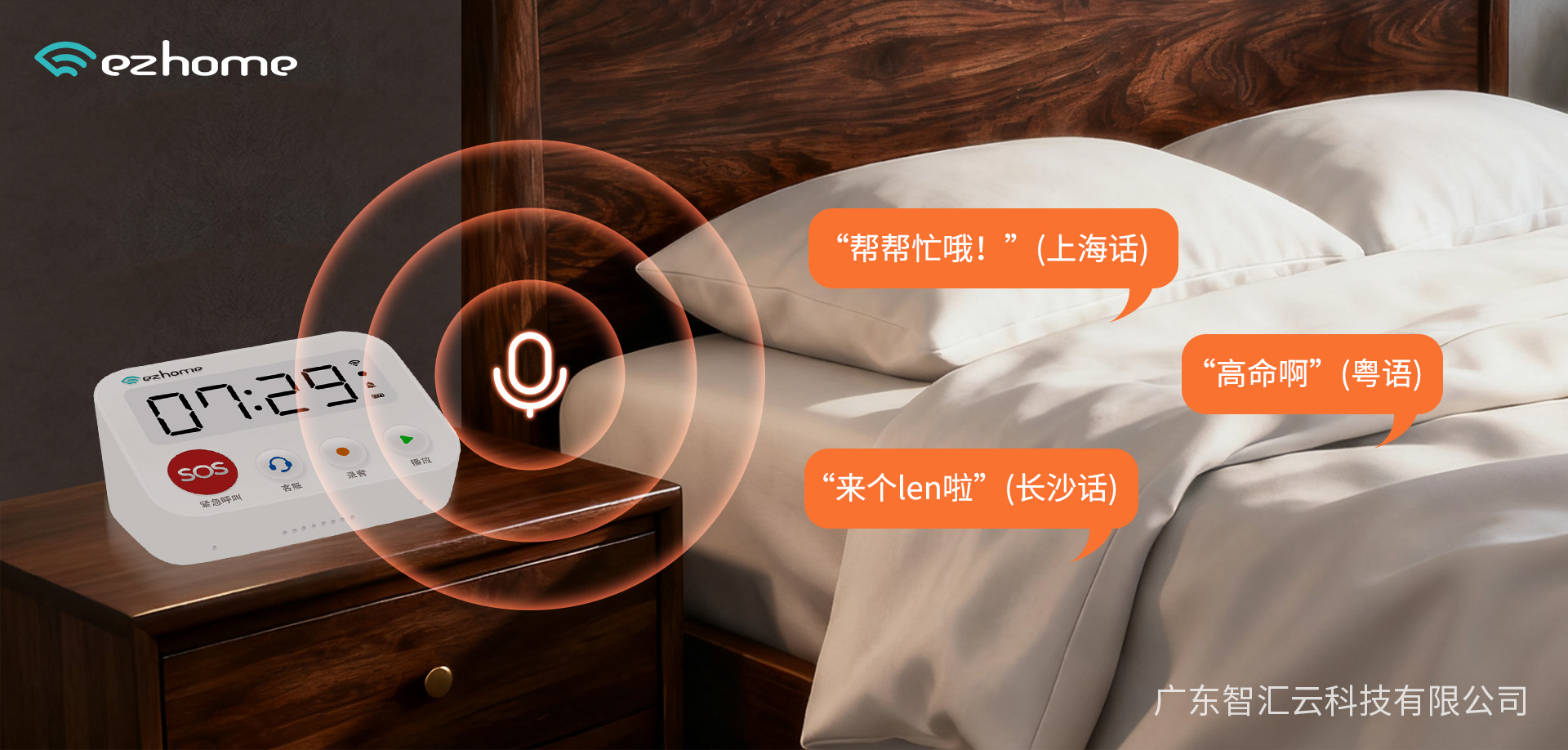 设备支持一键SOS与便捷的语音呼救。只需按下SOS按键,或用直接语音喊话都能触发求助,操作非常简单。为进一步贴近老人的语言习惯,产品还设计了方言功能,可以精准识别包括潮汕话、宁波话、温州话在内的多种方言指令。老人怎么喊,设备都能听懂。
