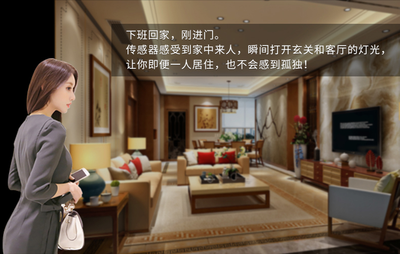添加三合一传感器,让你的家智能起来,当家中有人时根据你所在区域,所处光线和该环境的温度来判断,帮你开灯,或者关灯,打开或者关闭空调和窗帘,自动调节,让你长期呆在一个空间都不会有任何不适感