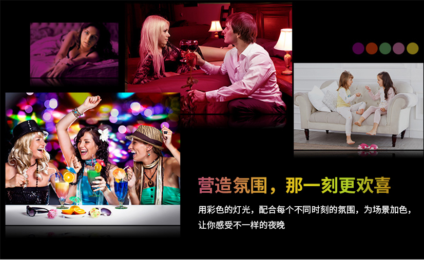 看电影的时候,情侣间约会的时候,朋友间聚会的时候,开香槟开part的时候,或者是一个人在家的时候,都可以根据你的场景来调节多种颜色