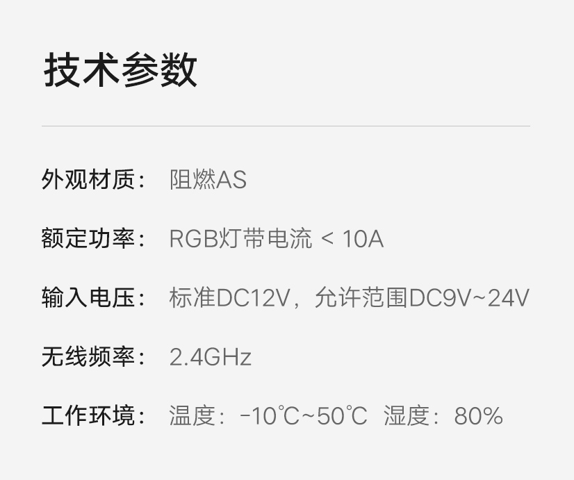 搭配RGB灯带和变压器使用,可调节多种灯光色彩;