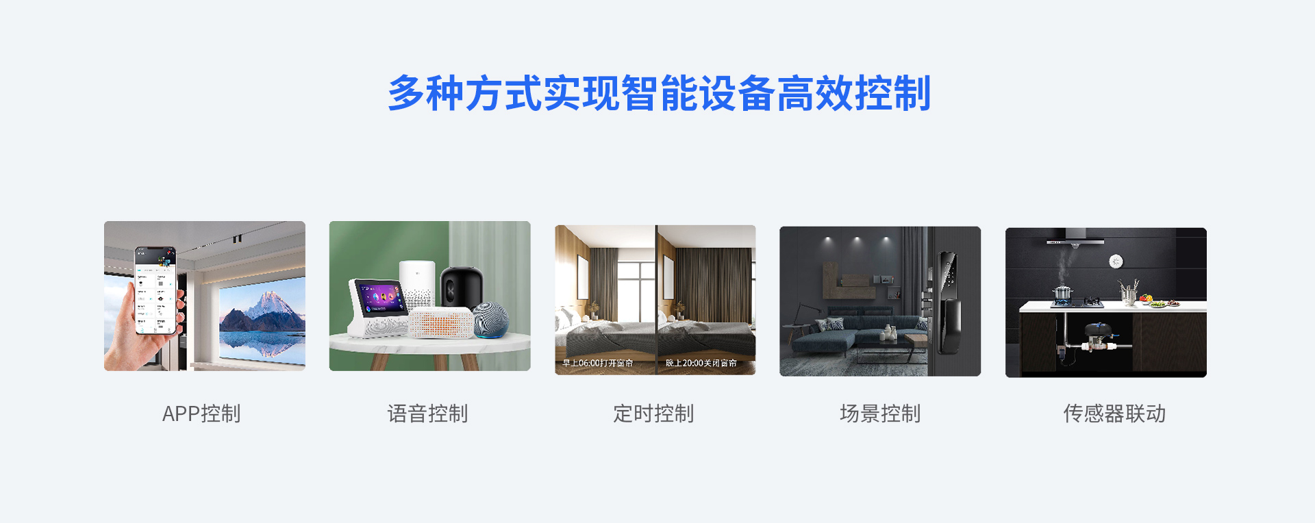 • 硬件设备灵活定制:智能开关、智能照明、窗帘控制、家电暖通、影音控制、环境控制等,支持OEM/ODM,多品类硬件设备定制;