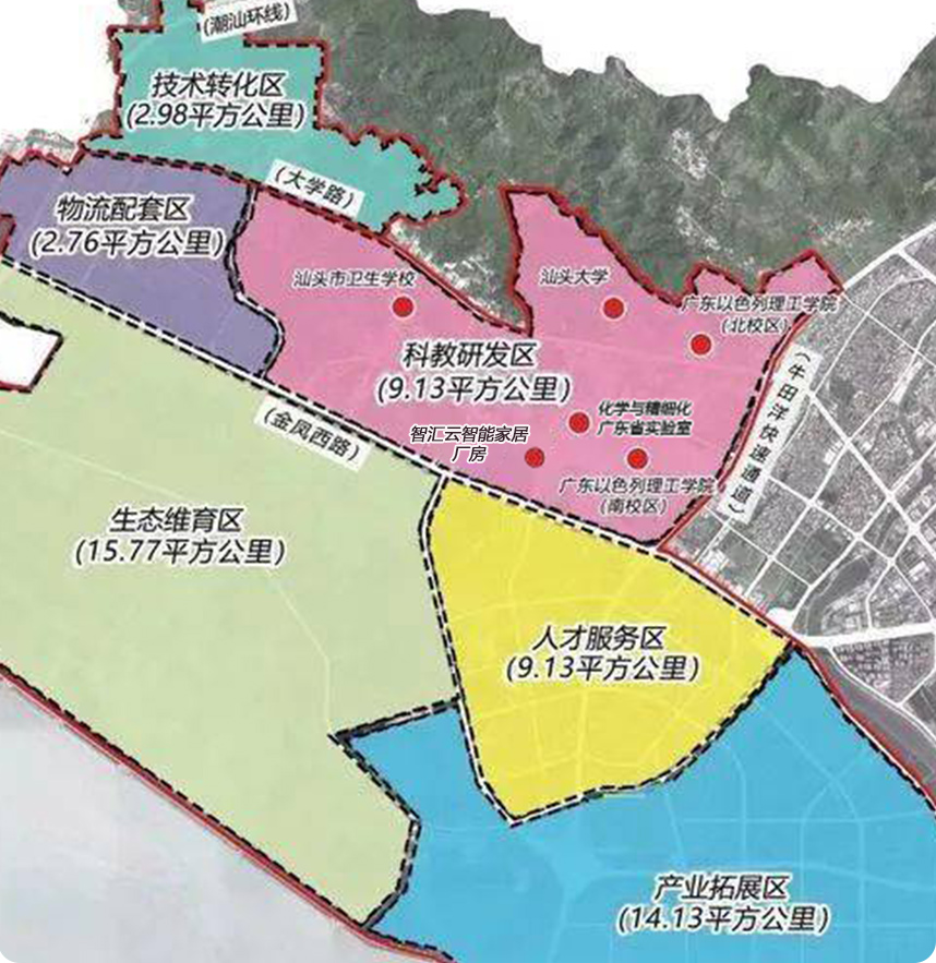距离汕头大学1.7公里,距离广东以色列理工学院2公里,距离广东以色列理工学院南校区仅600米,两所高校提供对口专业高层次人才,3公里范围内10万居住人口,覆盖技术工人至研发人员全层级用工需求,解决企业招聘痛点。