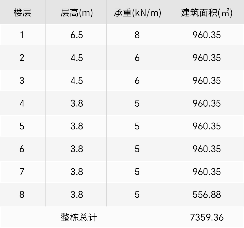 • 1-5栋为8层通用厂房共计42127.31㎡,厂房均高为 36.3m;其中 1栋建筑面积 9536.86 ㎡, 2栋建筑面积 8589.85 ㎡, 3栋建筑面积 7359.36 ㎡, 4栋建筑面积 8165.66㎡, 5栋建筑面积 8475.58 ㎡;