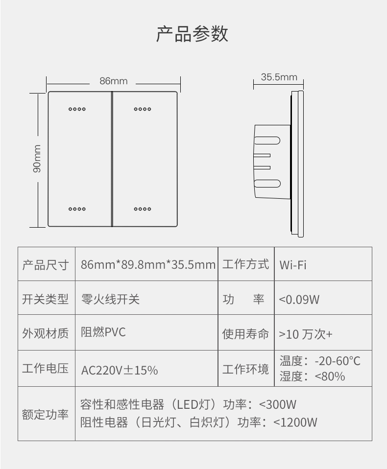 智能情景面板 在触摸开关的基础上衍生而来,支持一键触发多种智能设备开、关及DIY各种情景模式,充分满足了用户的多控需求。智能情景面板采用标准86盒设计,完全兼容传统照明开关面板,可直接替换;低功耗,安全绿色环保。