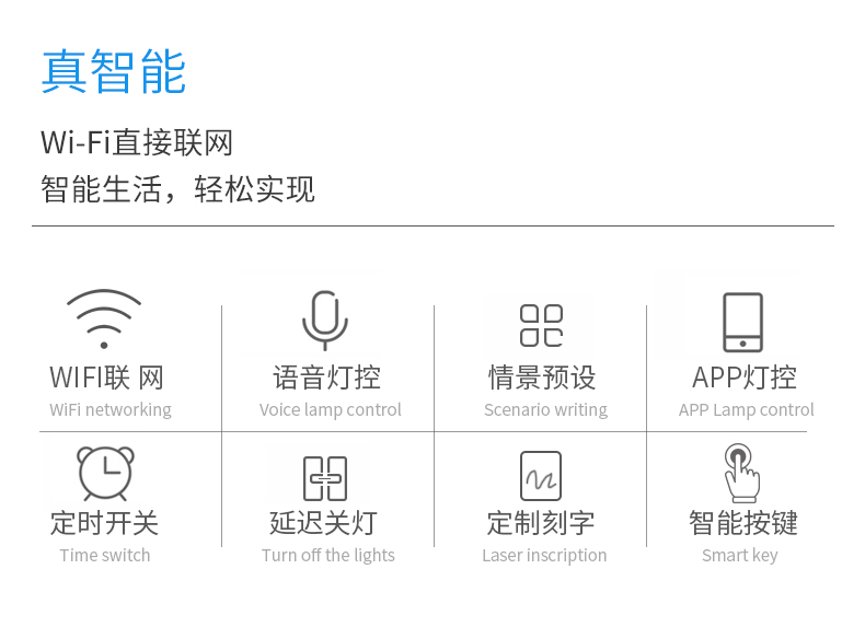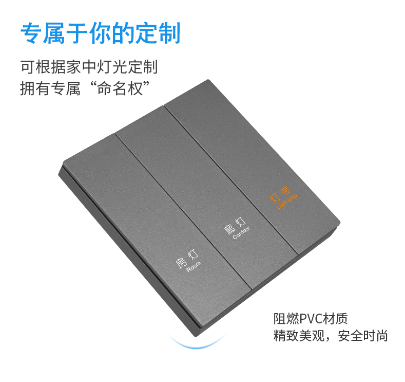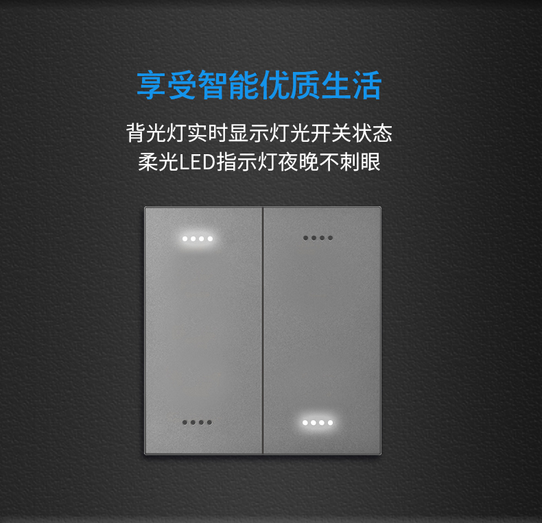 轻触智能开关面板 采用纯平轻触设计,机械手感,大按键优雅大气,适用多种装修风格,功能多样,即可作为面板开关使用,也可作为场景面板使用。且同时具备反应灵敏,性能强大;无需改造电路;安全便捷;人性化设计,防触电;寿命长,节约成本;适用范围广(商品房、别墅、酒店、大厦等各类建筑房屋)