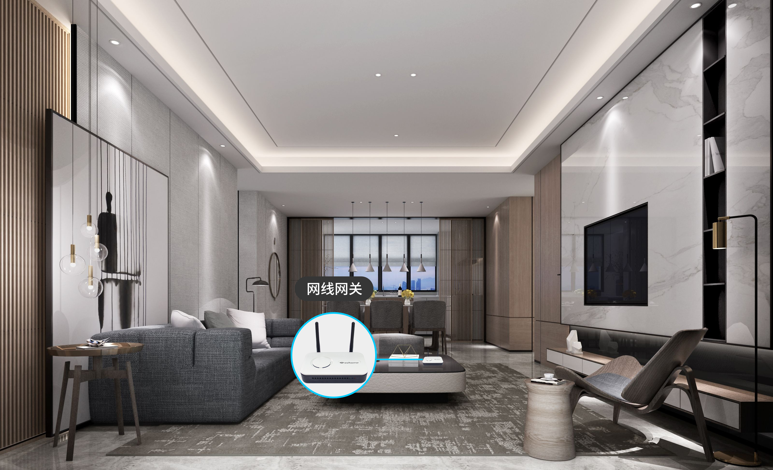 网线网关,是智能家居的心脏,实现整个智能家居系统的控制器。3499拉斯维加斯网线网关通过自主研发的通讯协议EZ-Net与智能交互终端等产品进行数据交互。它具备有优良的无线性能、网络安全的功能,且覆盖面积广。同时,还充当智能家居枢纽,适