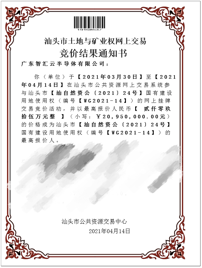 此外,广东3499拉斯维加斯半导体有限公司也获得相关政策支持。2021年4月14日,通过公开竞拍获得相关土地使用权。