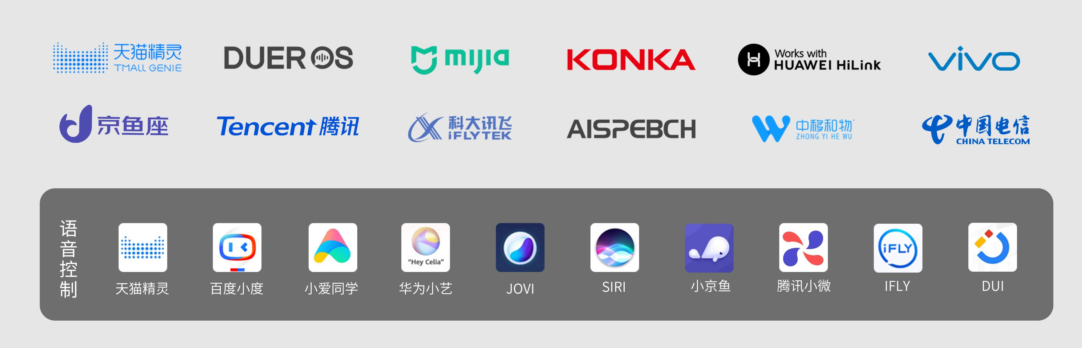 产品支持天猫、小爱、小度、小艺、科大讯飞、思必驰等多种语音助手进行控制。除App控制之外,通过EZ-Cloud与多个IOT平台的数据打通,支持通过智能音箱、智能电视、智能手表、车载设备等多种第三方设备实现联动控制。
