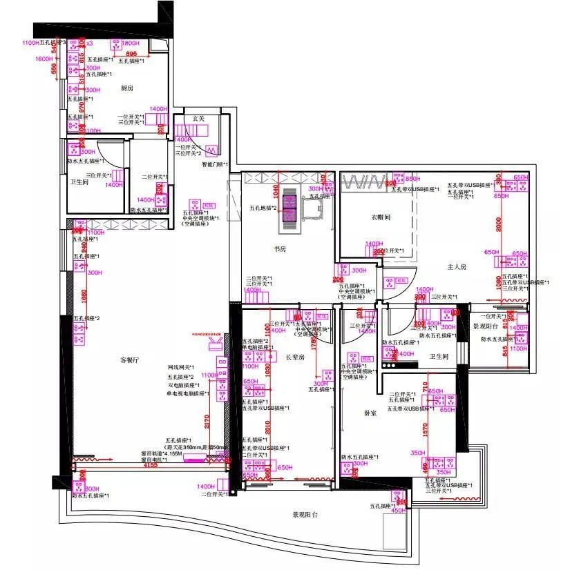 根据方案清单,对每个空间的每个产品需明确产品安装位置、安装方式、产品安装尺寸要求、要预留线路类型和数量规格等施工要求。