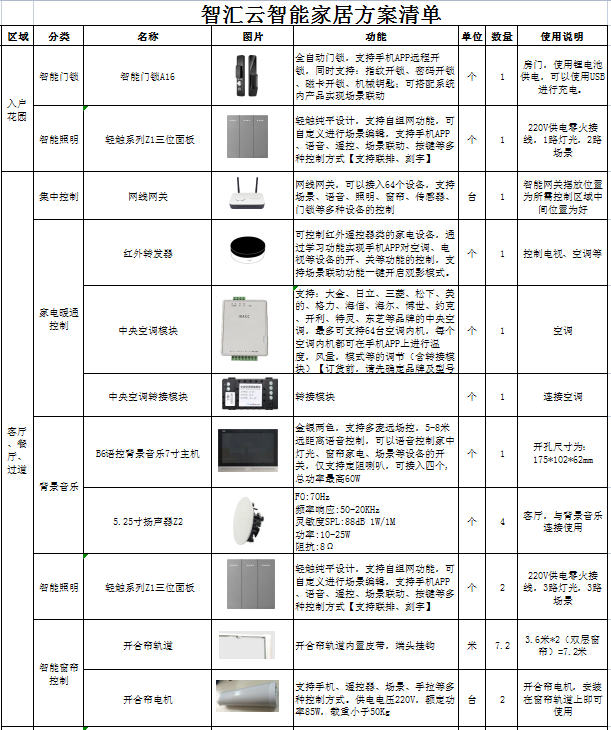 因此,全屋智能服务商在设计全屋智能方案前,会充分沟通用户需求,并根据用户的房屋开关图、灯具图来出具方案清单和设备点位图,同时对每个区域每个产品可实现的功能和场景加以说明。