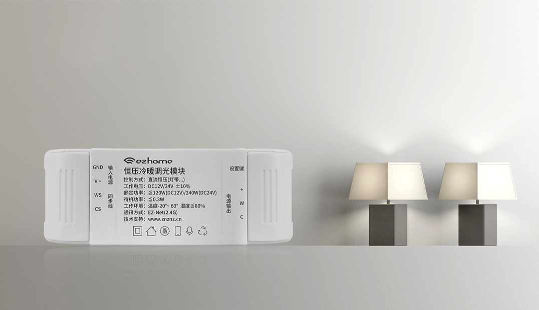 冷暖智能调光系列产品可适配RGB调色灯带、冷暖灯带、LED、筒灯、射灯等多种类型灯具使用,色温调光丰富,支持多种灯光调节模式,实现调节亮度以及冷暖色温的效果。