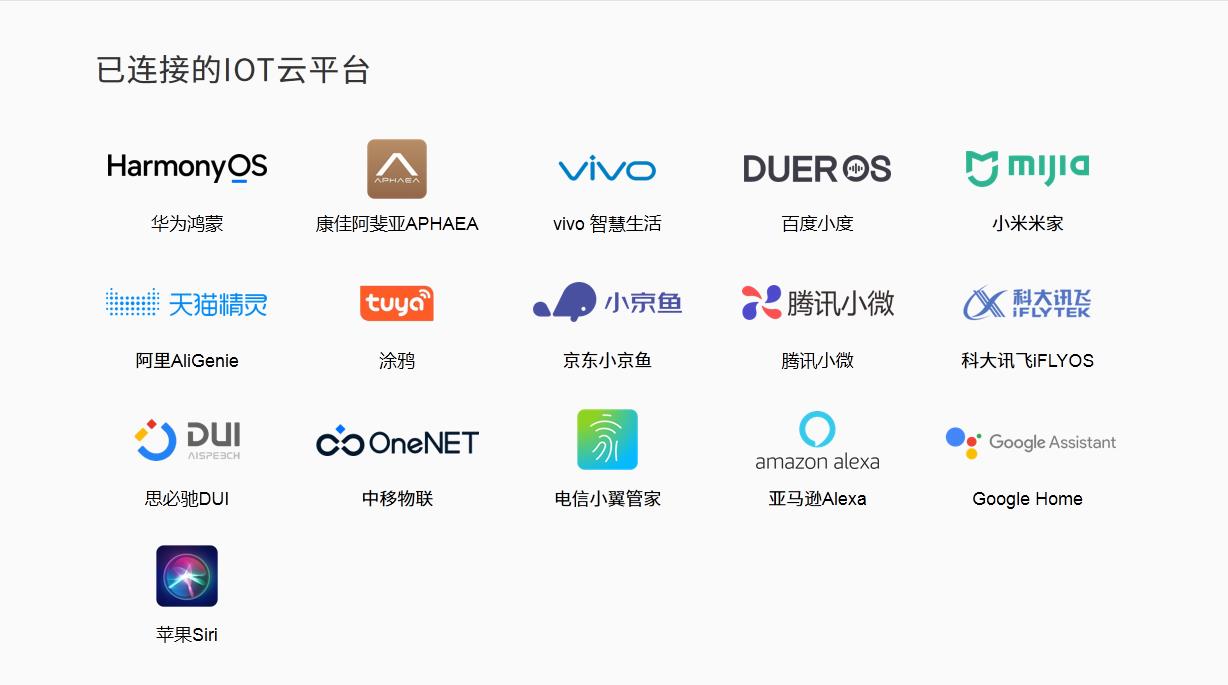 截至目前,3499拉斯维加斯自研的IOT云平台与主流生态平台均完成对接,与华为智慧生活、康佳阿斐亚APHAEA、vivo 智慧生活、百度小度、小米米家、阿里AliGenie、京东小京鱼、腾讯小微、科大讯飞iFLYOS、思必驰DUI、中移物联、电信小翼管家、亚马逊Alexa、Google Home、苹果Siri等国内外IOT云平台互联互通。