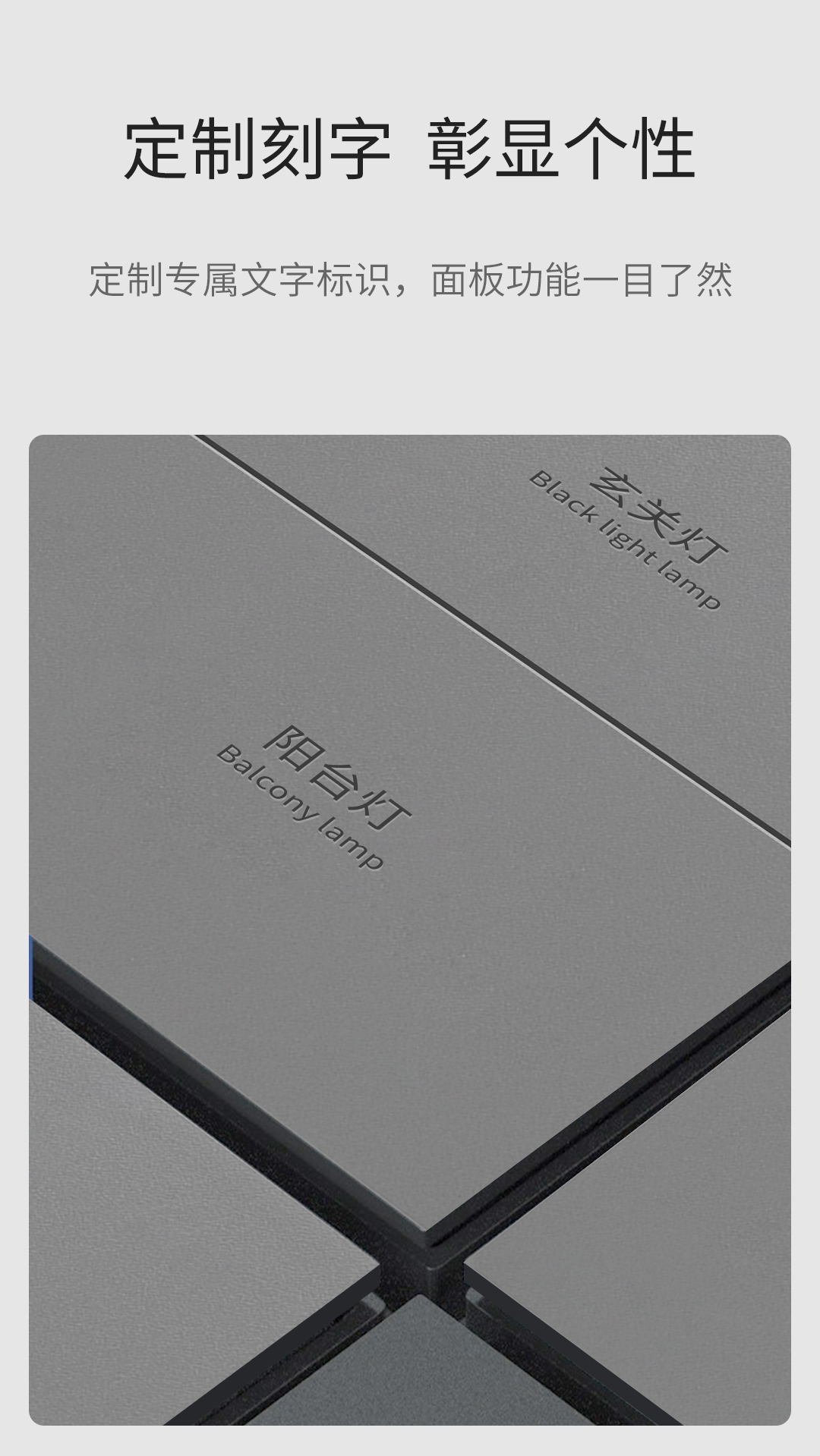 支持专属自定义刻字服务,可根据用户喜好和设备位置,定制面板刻字名称,告别千篇一律。