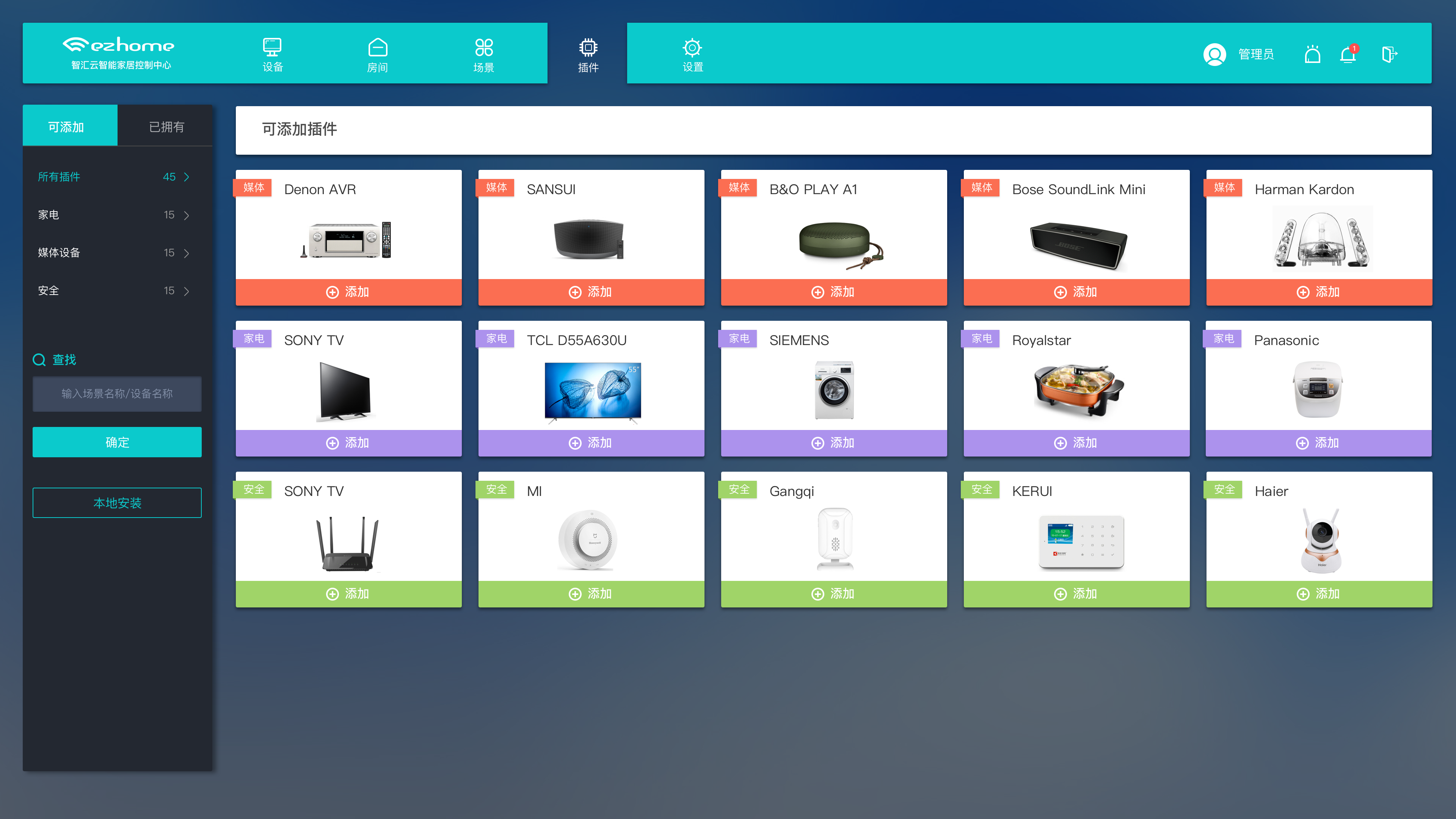 主机系统也支持插件功能,比如可视门铃、背景音乐、安防等,更多插件功能也会陆续开发!