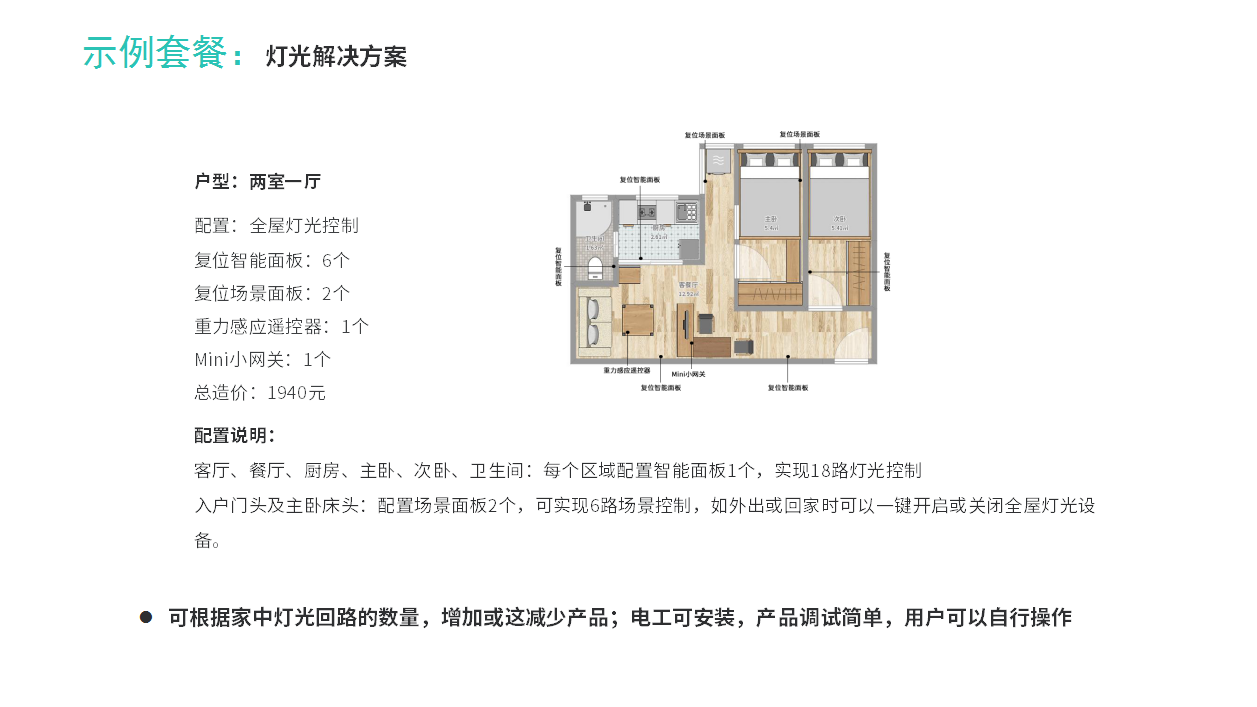 4. 在家电、灯光控制上具有多种控制方式,使用简单,且产品稳定性高,大大降低后期维护量。低成本、简智能的特性,更适合成为房地产商打造智慧社区。