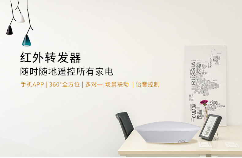 红外转发器,随时随地即可控制所有家电设备,一个控制终端,就能远程操控,360°全面覆盖。