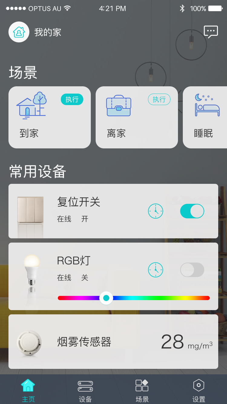 可在APP上设置灯光及家电设备的开启关闭时间,到点执行已设定操作,可配合场景联动实现多个灯光及家电设备的开启和关闭;晨起模式下,7点准时打开唤醒灯,窗帘缓缓拉开,让你可以按时起床;离家模式下,8点离家上班,到点准时关闭家中所有灯光,关闭设置内的家电设备及气阀和水阀。