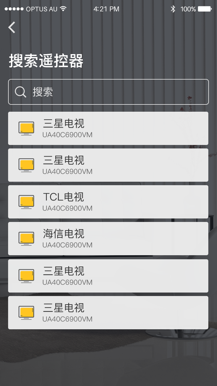 可通过输入家电设备遥控器背后设备型号,从红外码库中选择相应设备遥控,实现匹配控制家电设备。