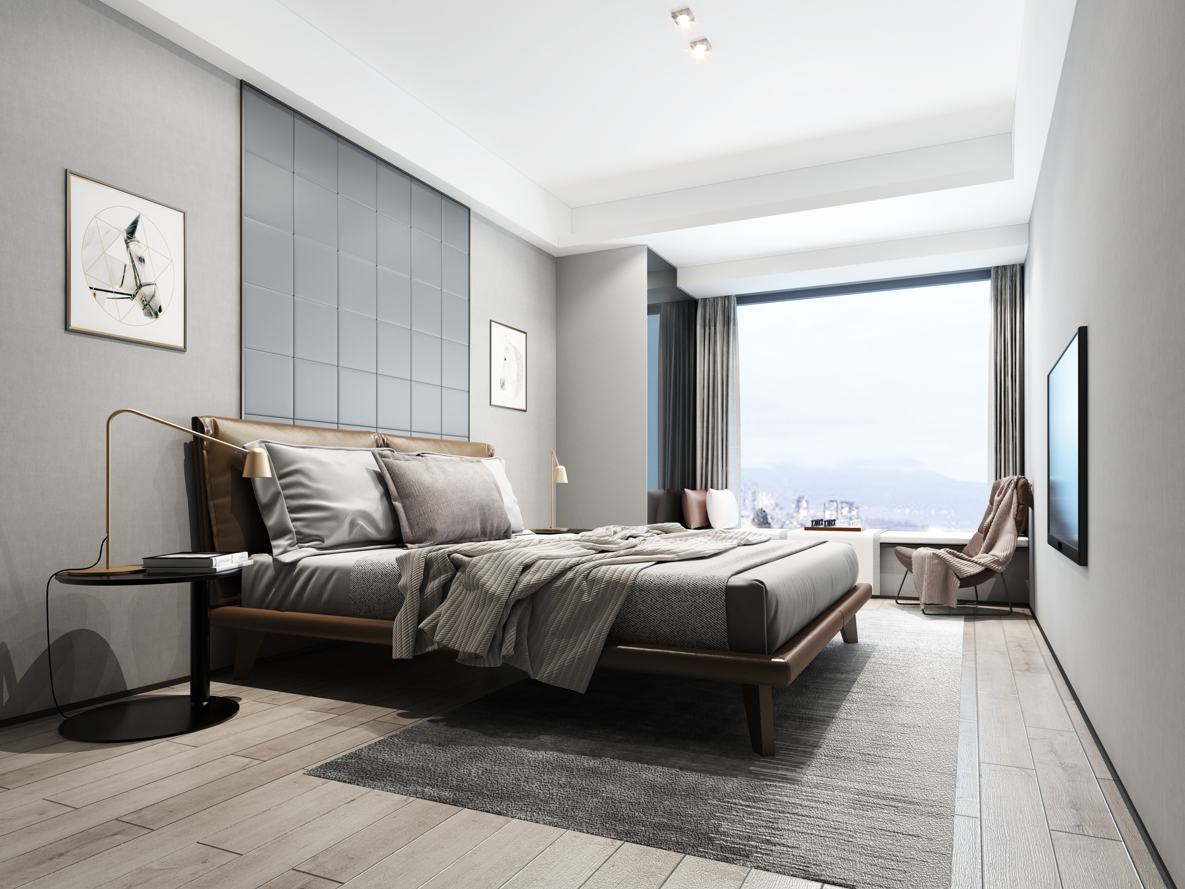 需要达到灯光控制、窗帘控制;卧室门口和床头可以安装一个到两个智能开关面板,设置特定场景模式,“起夜”、“唤醒”、“睡眠”等模式,实现智能调节卧室灯光环境的作用。