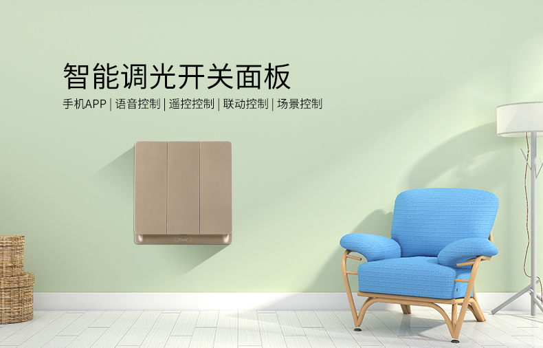当你走进房间,可按下智能场景面板,一键开启房间内所需打开的灯光;睡前调节屋内灯光亮暗,也可通过语控设备或是手机APP进行控制;再无需起身走到开关面板前,逐一按下面板按键。