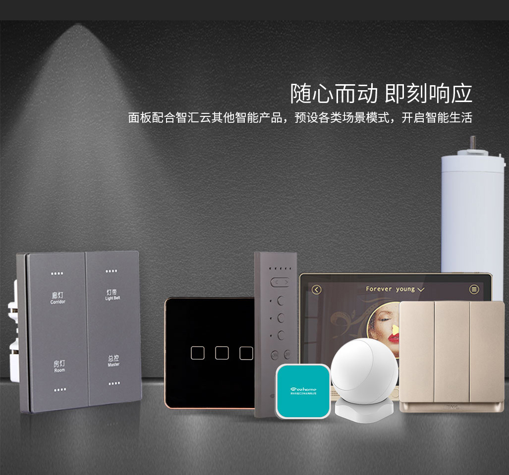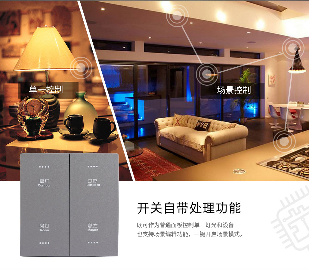 面板自带处理功能,可以搭配其他智能产品,通过简单场景编辑即可实现联动控制。
