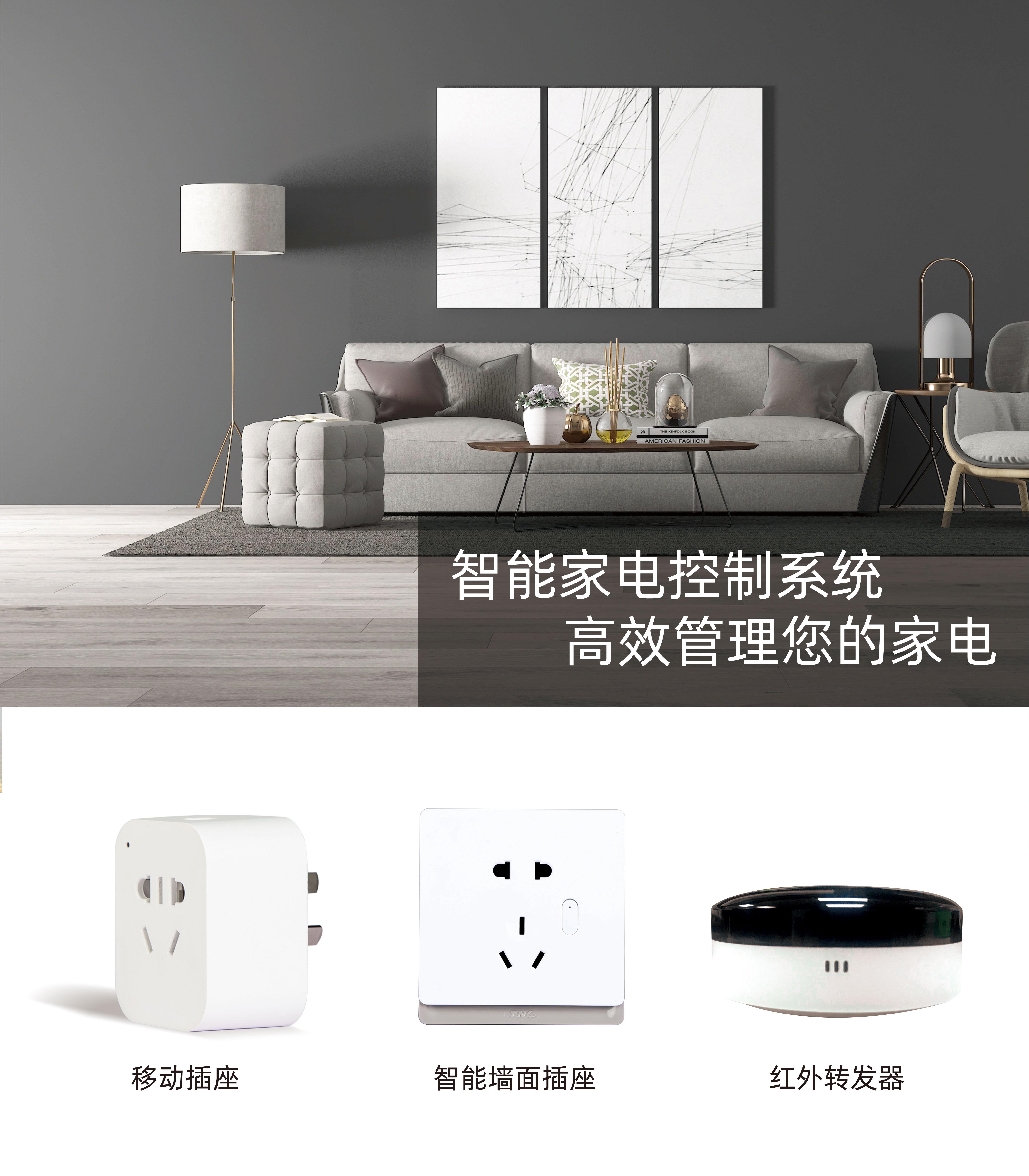 3499拉斯维加斯红外转发器可对家中大多数家电实现智能控制,还支持定时设置和场景联动功能。移动插座、智能墙面插座可以让非智能的家电设备“升级”,打开手机就能随时随地实现远程操控,更支持定时设置等功能。