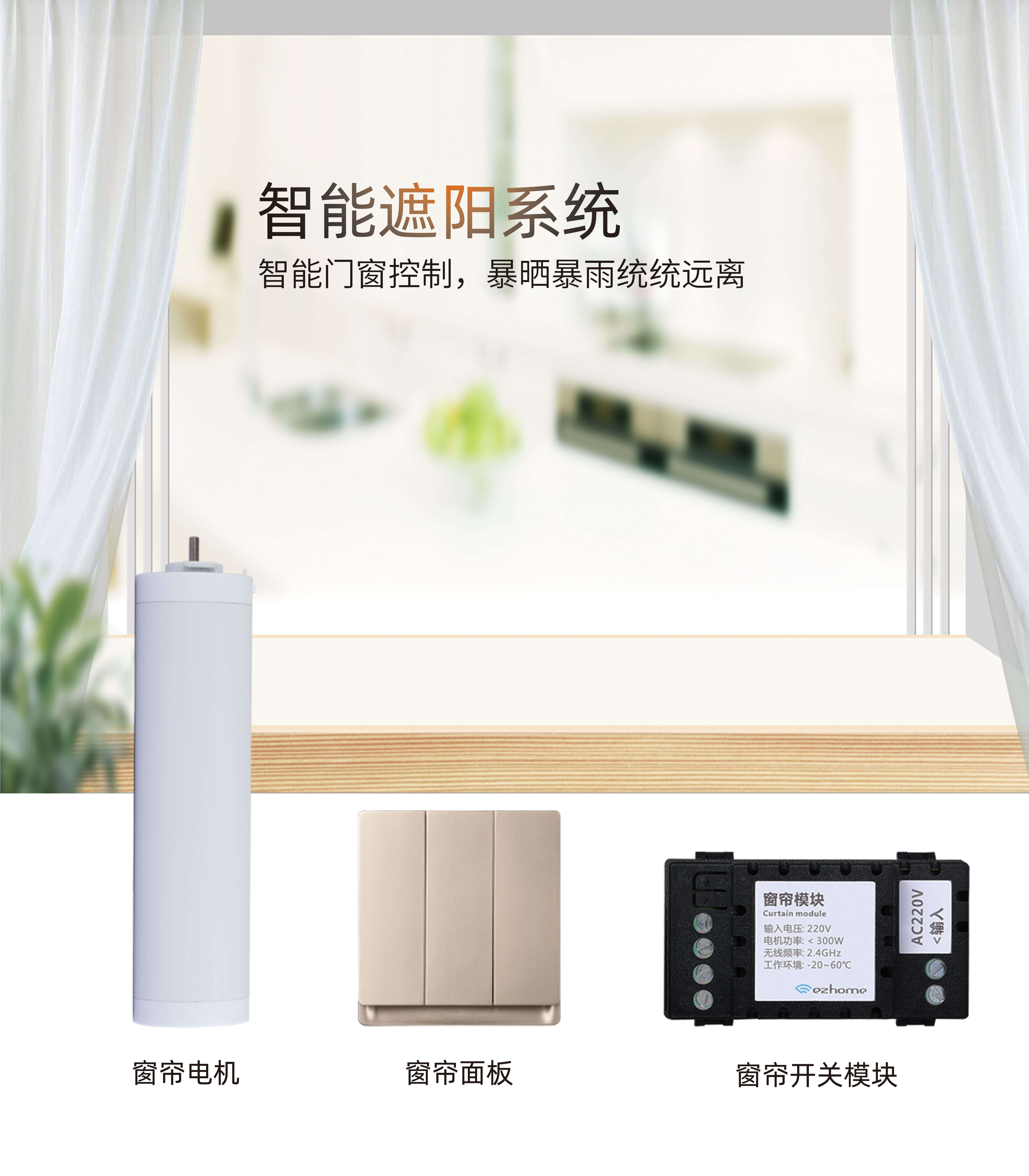 3499拉斯维加斯窗帘电机搭配运行轨道,可对家中窗帘进行智能化控制;通过设置不同的场景模式,对智能照明、智能家电控制等系统实现场景联动控制。窗帘开关模块和窗帘面板则是可以搭配外置窗帘电机、接入卷闸门、投影幕和推窗器/开窗器使用。