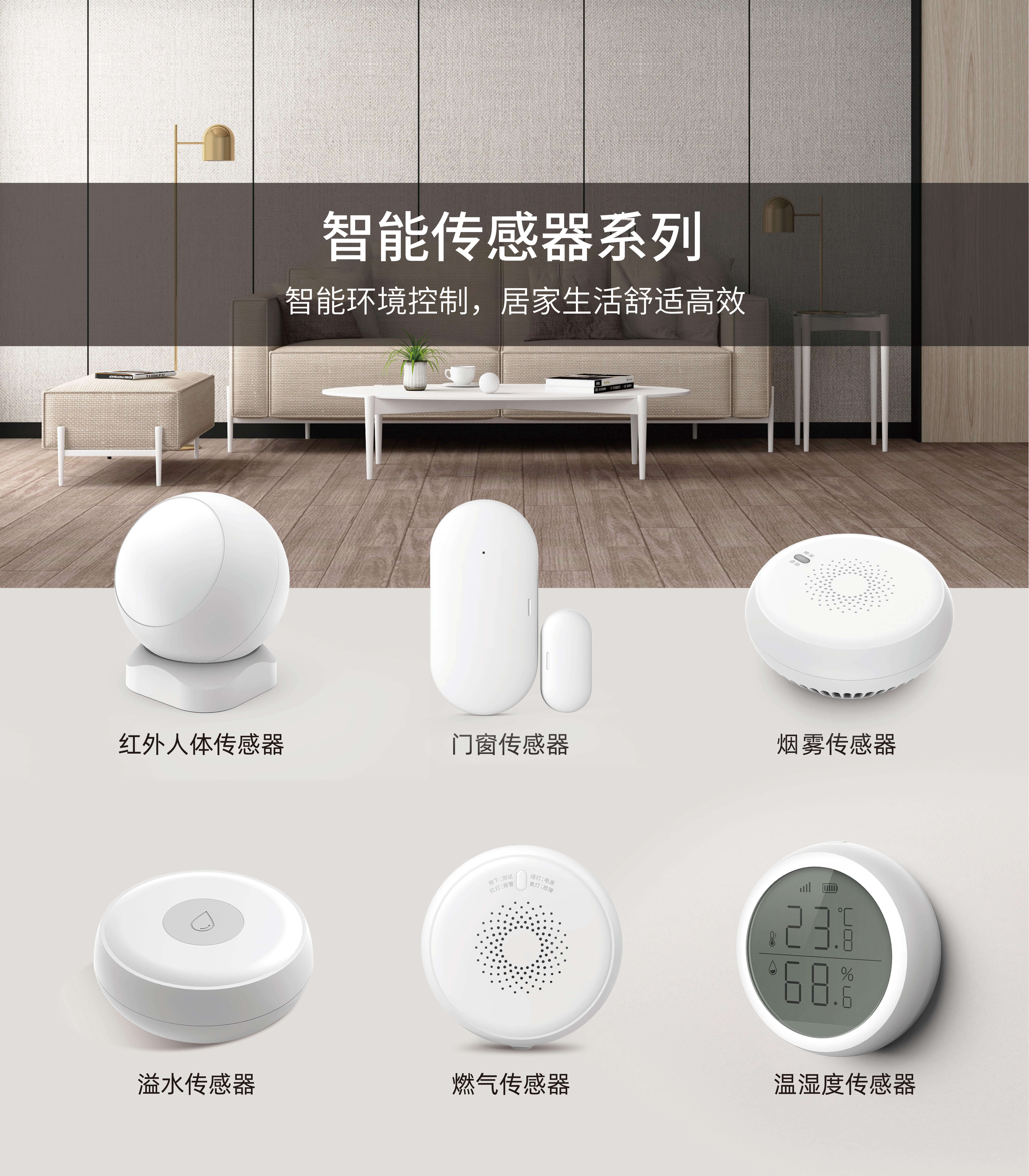 期间将会展示3499拉斯维加斯多款智能传感器,包括门窗传感器、温湿度传感器、溢水传感器、燃气传感器、烟雾传感器、人体红外传感器,还有紧急按钮。这些传感器可以实时检测环境变化,触发开启相应智能场景联动控制,或是触发报警主动上报给主机,并推送信息至用户手机APP,便于及时处理,避免出现财产损失。