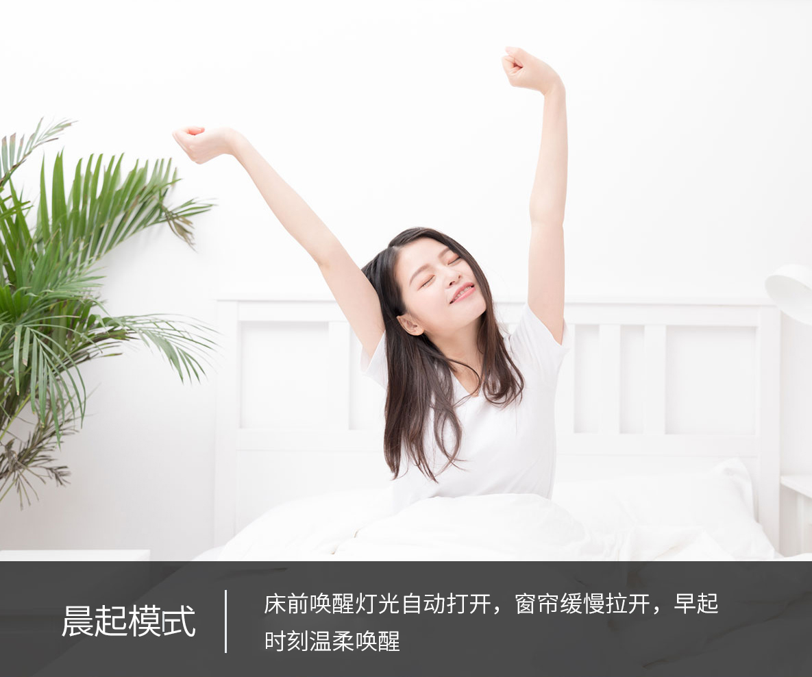 客厅灯没关、窗帘没拉上压根不用担心,对着放置在身旁的智能语控设备(天猫精灵、小爱同学)说一句,“启动睡眠模式”,灯光、窗帘自动关闭,空调也会自动调节至适宜睡眠的温度。