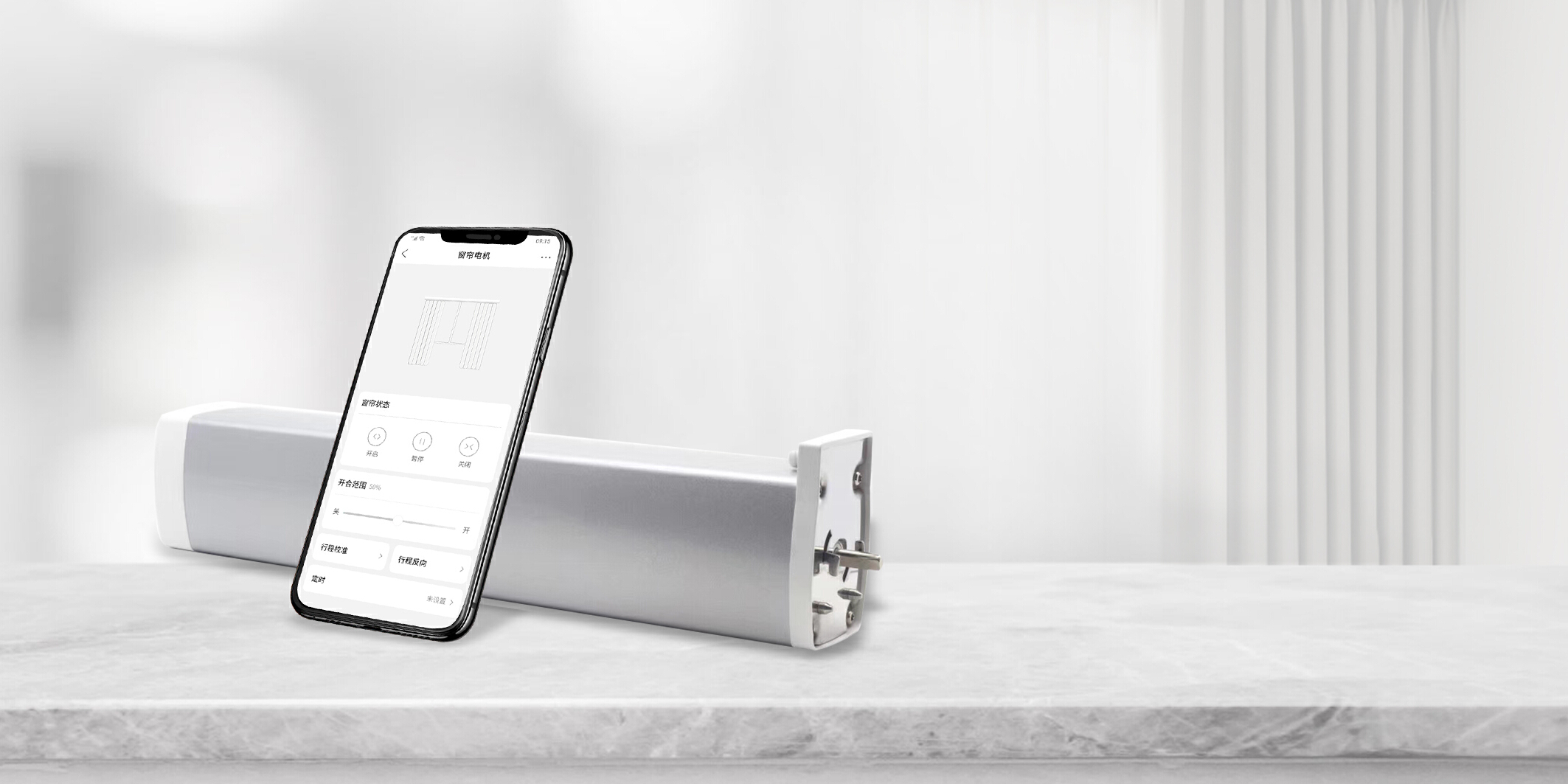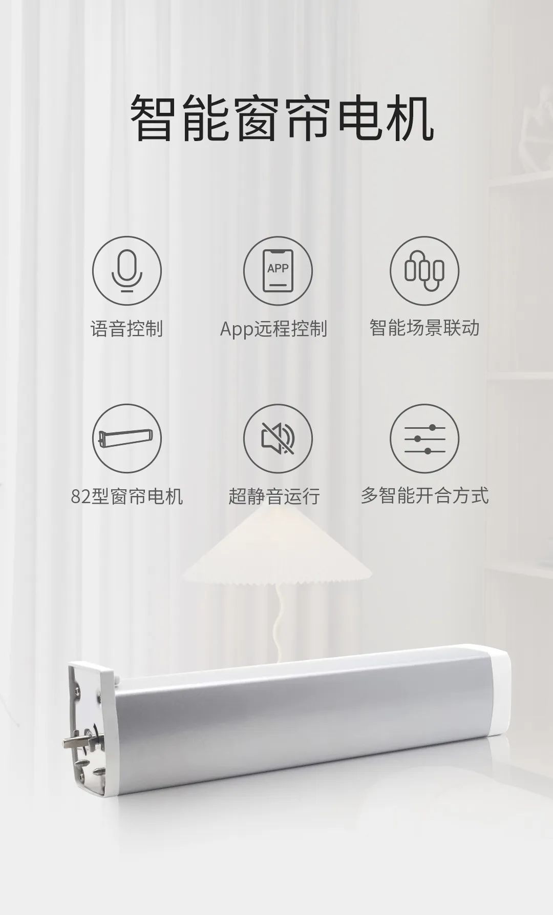 选购智能窗帘时,首先看电机。智能窗帘大部分都是外置电机,体积太大会露在窗帘外面,选机身短的电机比较美观。