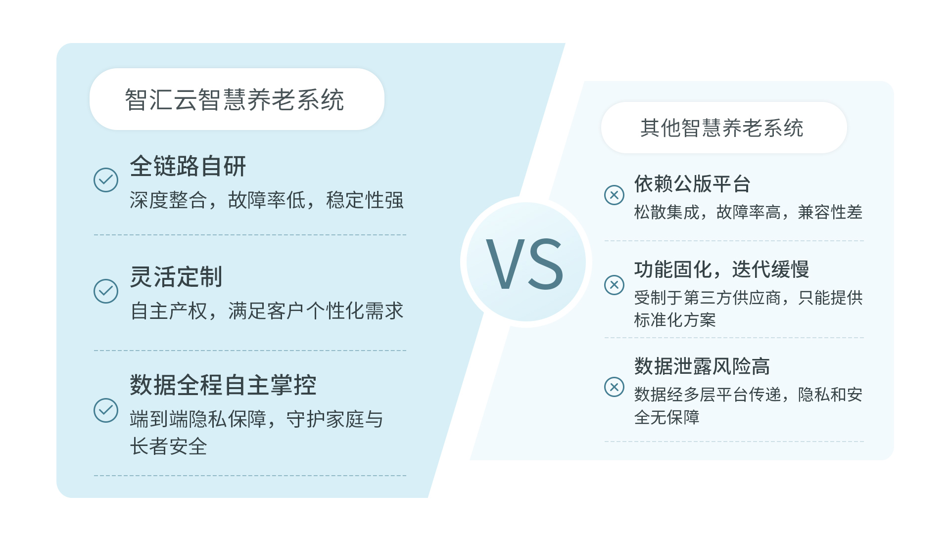 • 安全隐私: 全程掌控数据流,无需多层云平台数据的传递,保障长者隐私数据和家庭安全,杜绝数据泄露风险。