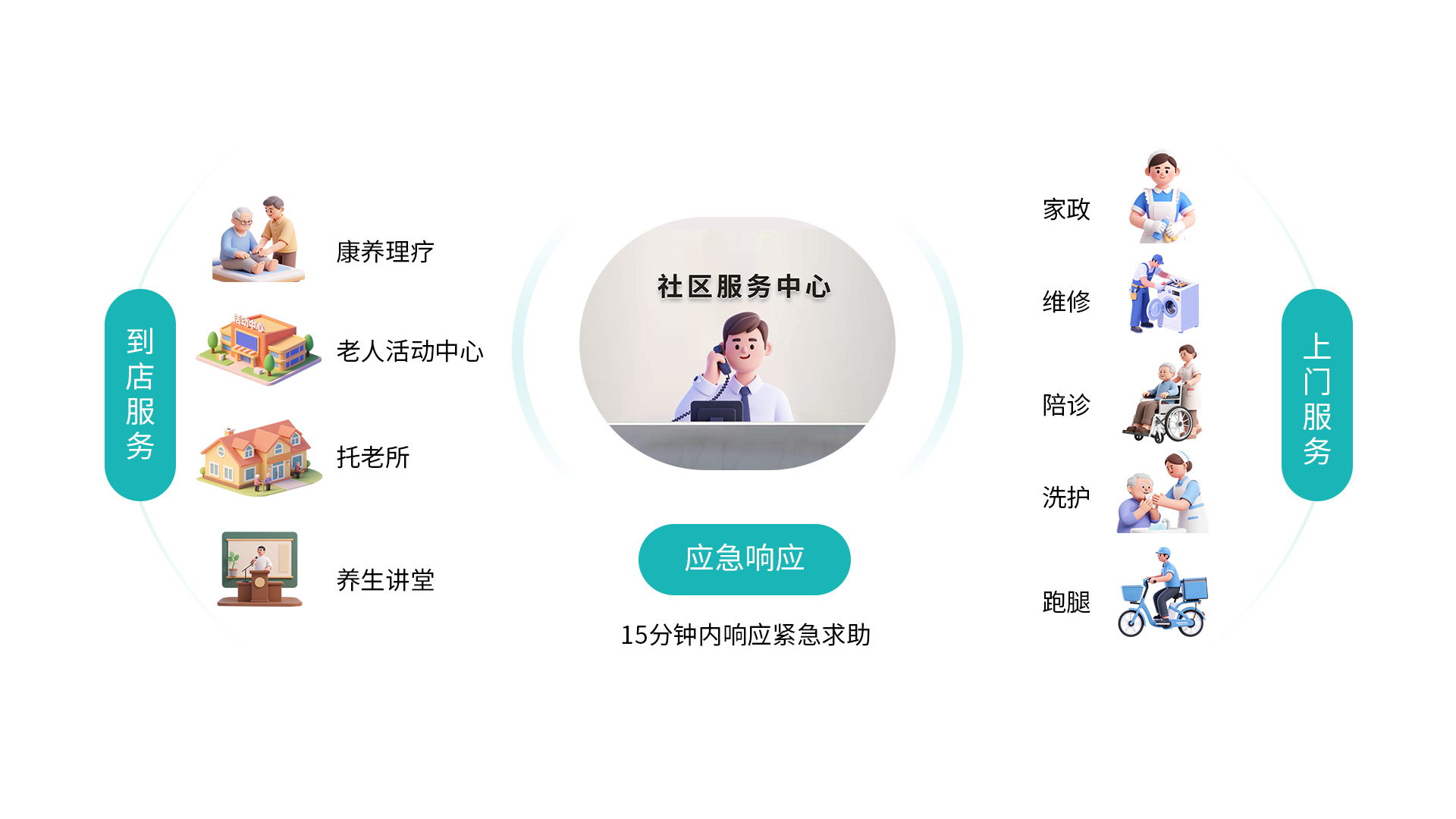 生活更便捷:一键发起服务请求,15分钟救援响应,30分钟生活服务。涵盖紧急救援、家政、维修、陪诊、康复理疗、老年课堂等,全面满足居家长者的日常需求。