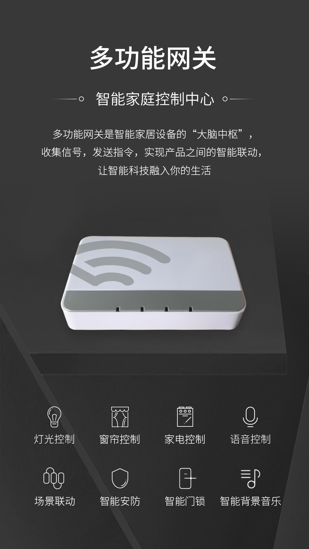 网关,是全屋智能家居的中枢设备。除了智能单品,需要联动全屋智能家居的设备,基本都要连接网关,通过网关连接家庭内网和外网,保证内外网络的通信。